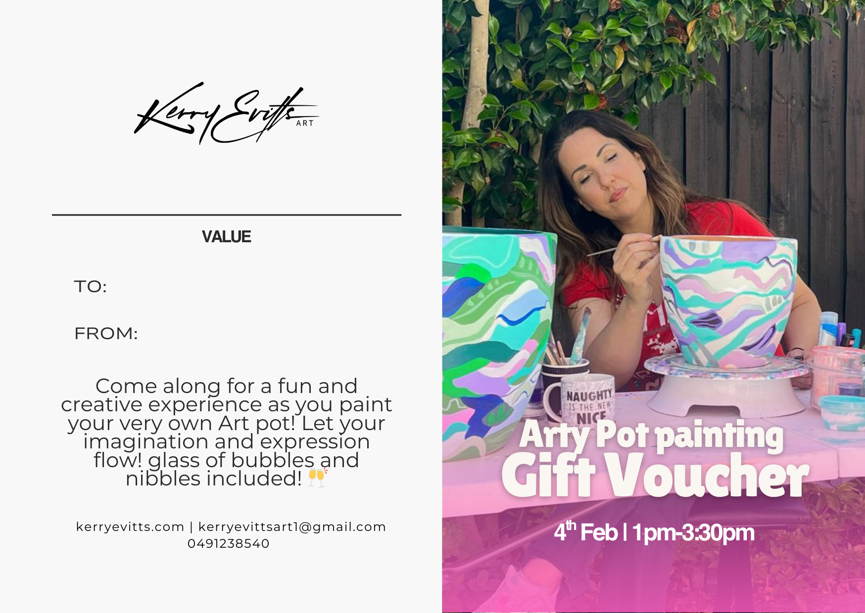 Looking for a pressie that’s fun, thoughtful, and a little bit fabulous? Send someone special our Art Pot Painting Gift Card! It’s the perfect way to treat a friend, partner, or loved one to a colourful, hands-on creative experience.