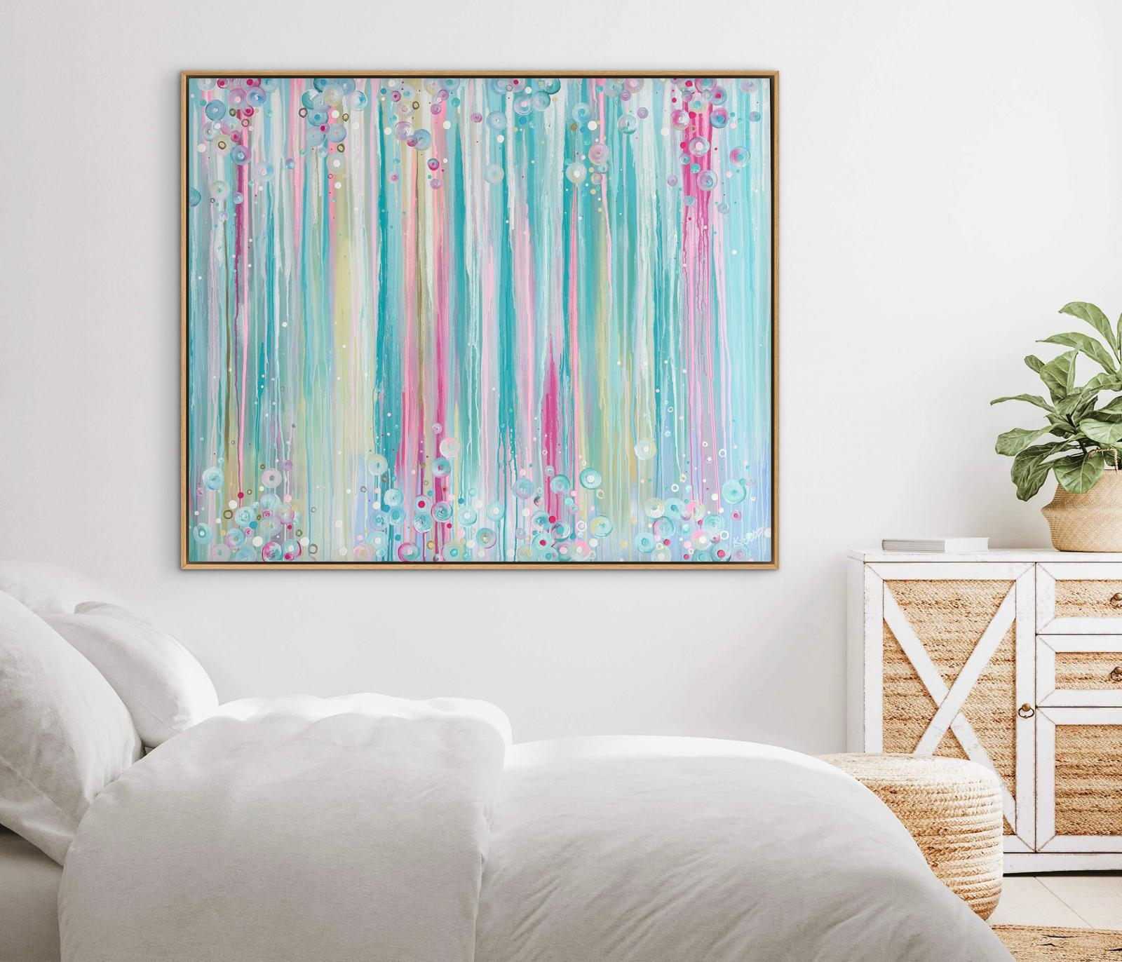 Acrylic, & Mixed medium on canvas, dressed in a stunning rescued timber frame